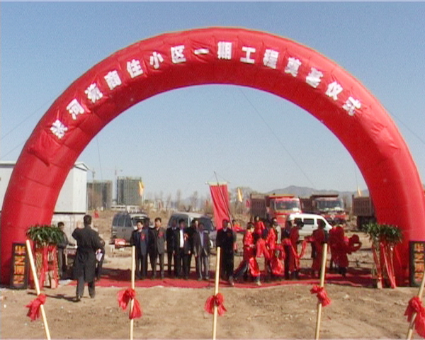 2009年3月22日上午, 我集团六公司中标的位于张家口市高新区清水河畔的亲河苑住宅小区工地,彩旗飘扬,锣鼓宣天,10时28分,开工典礼隆重举行,做为亲河苑住宅小区一期工程的施工方之一,我九游官网张兰柱董事长与张家口市的有关领导共同进行了奠基仪式,赵志刚副总经理代表保定建业集团及施工单位致了贺词。